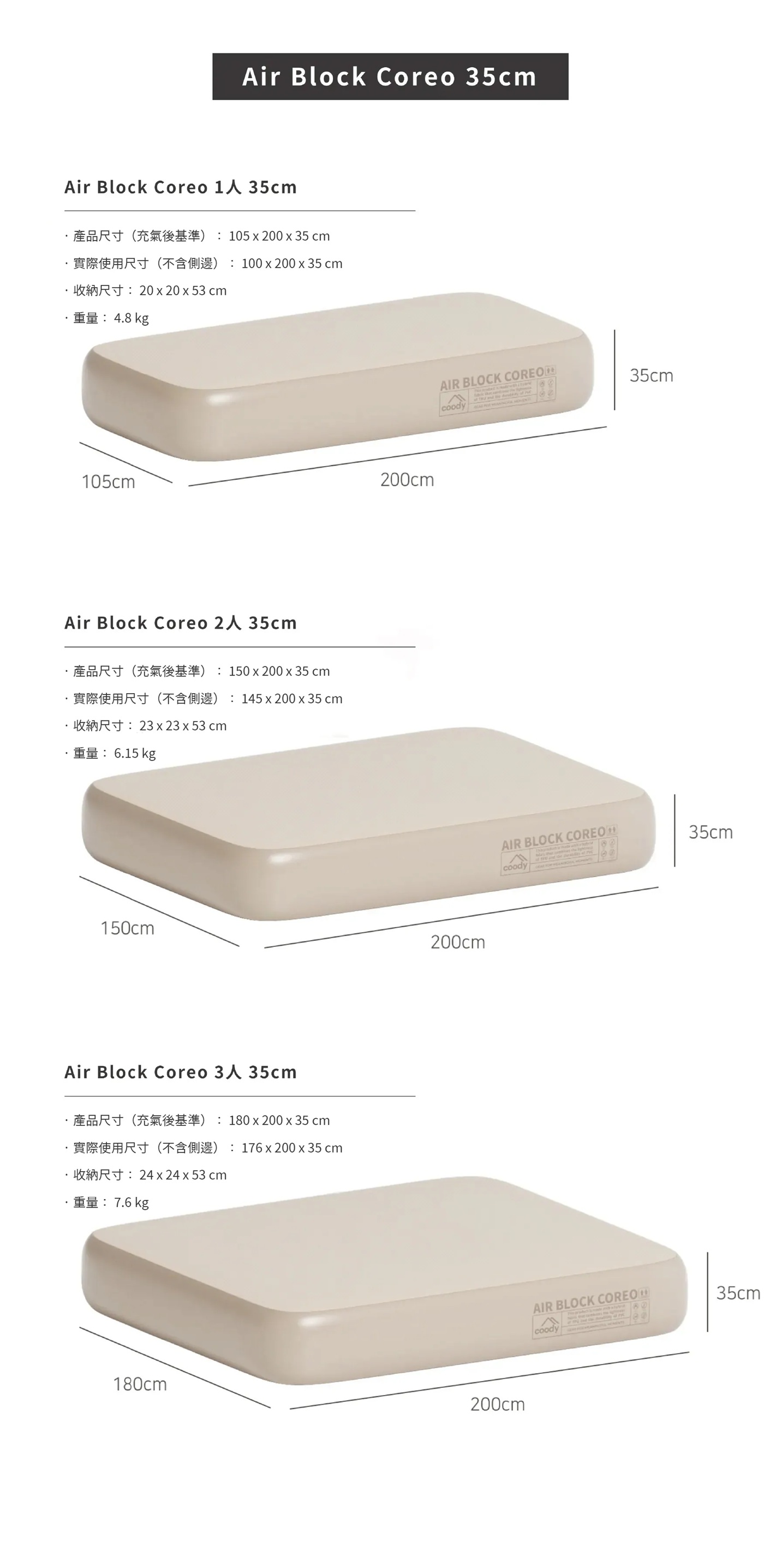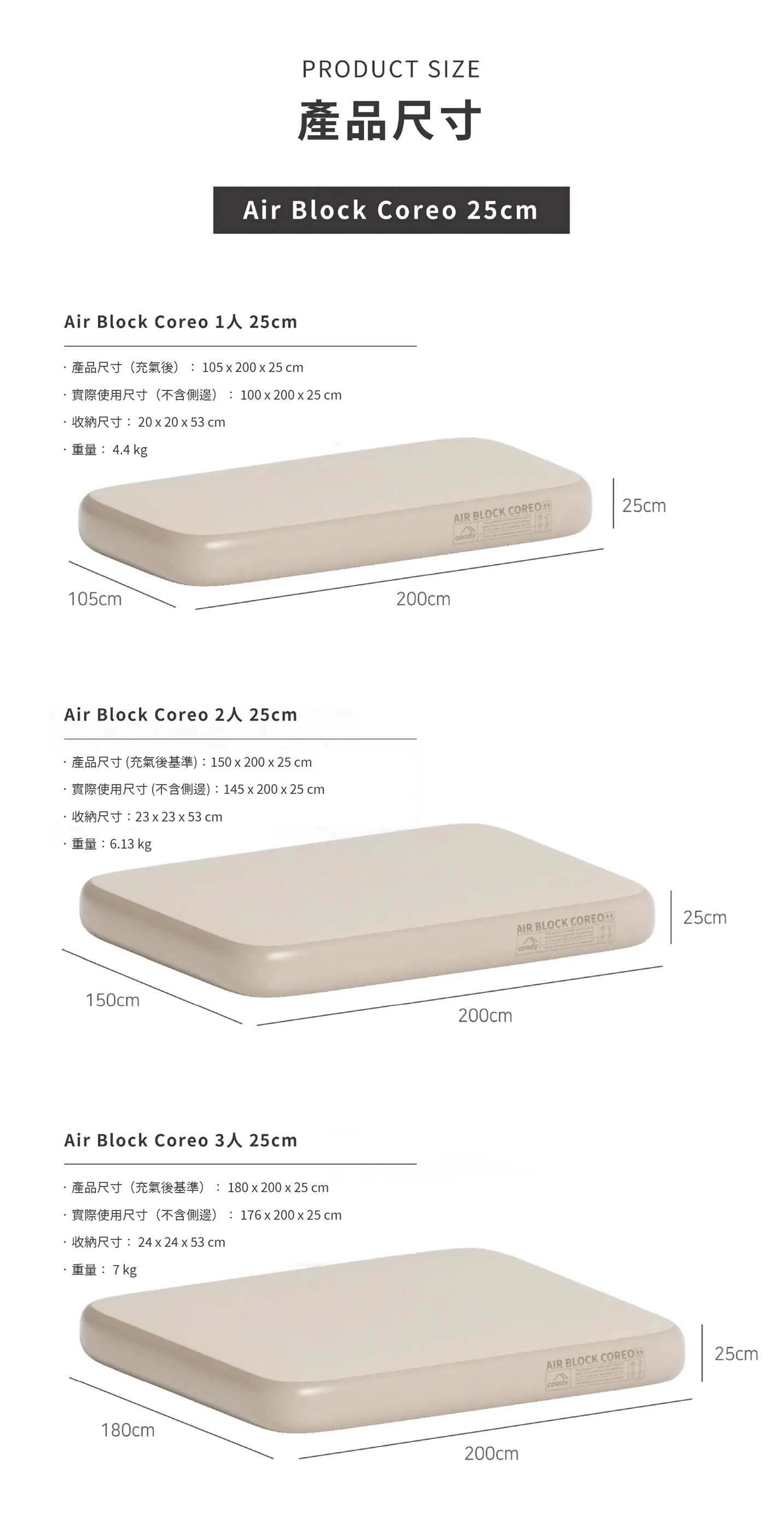 COODY Air Block COREO 彈絲充氣床墊 (預購) *預計1/22到貨