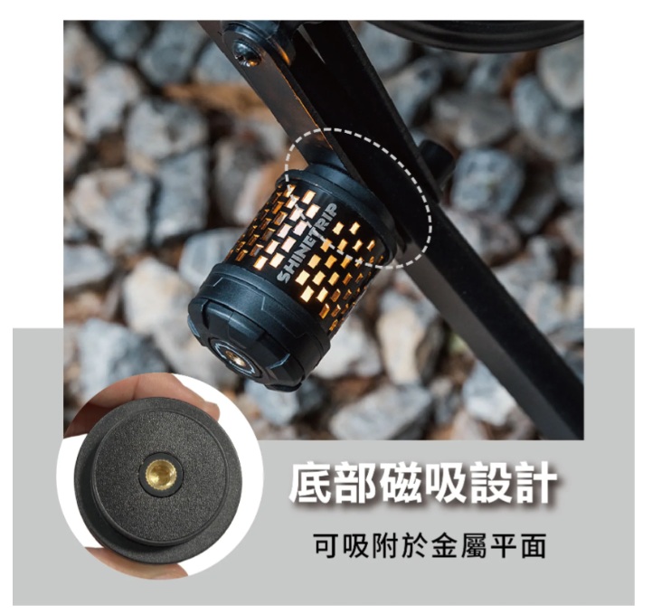 .磁吸設計,可吸附於帳桿、車側、鐵製桌架,一秒解放雙手。