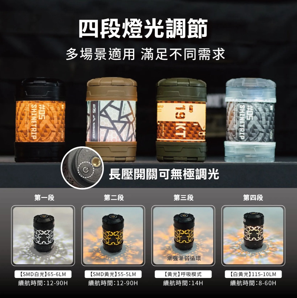 .四檔雙光源模式:白光/暖光/暖光呼吸/雙光齊亮。