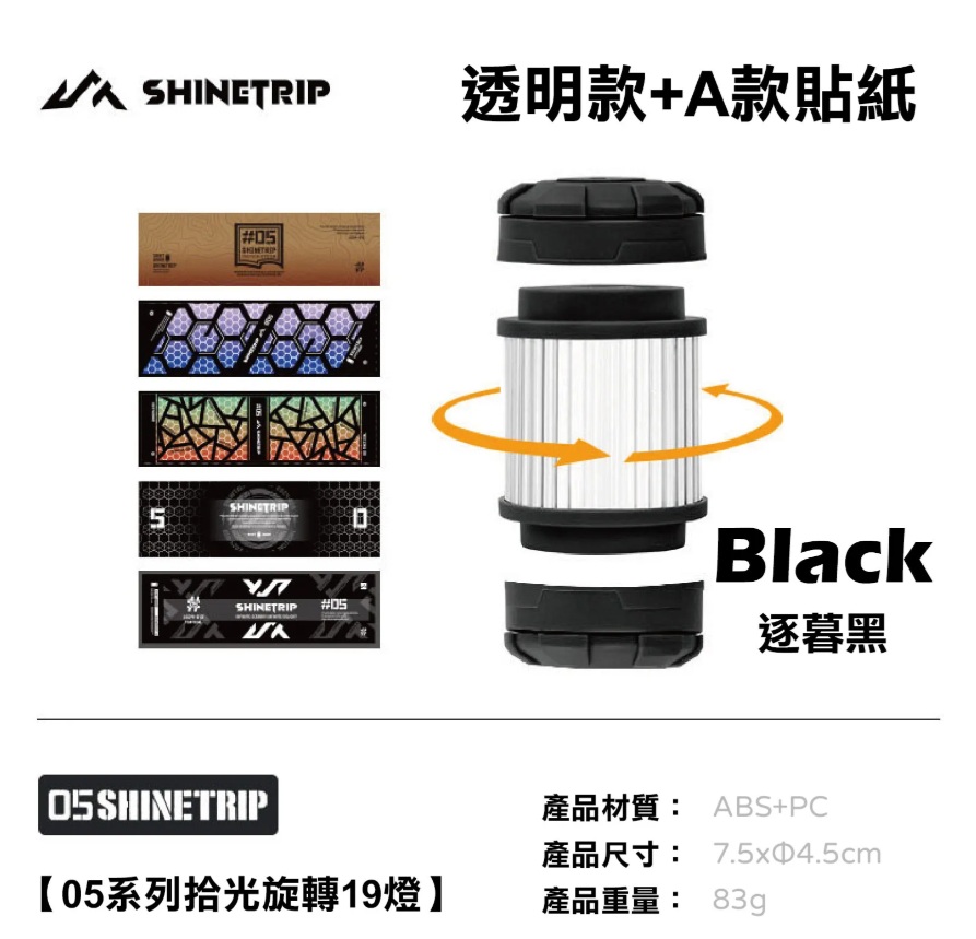 B. ST 拾光旋轉19燈(逐暮黑)+貼紙款 (★ 隨機贈五張貼紙,露營風格自由貼滿!)