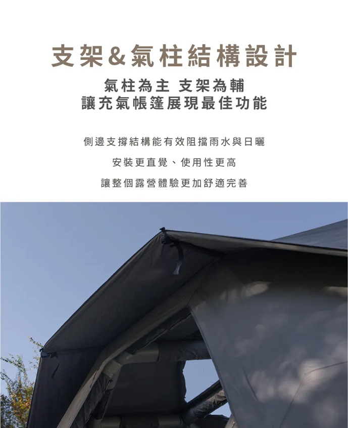 ・厚實耐用的氣柱,即使在風雪中也能安全使用