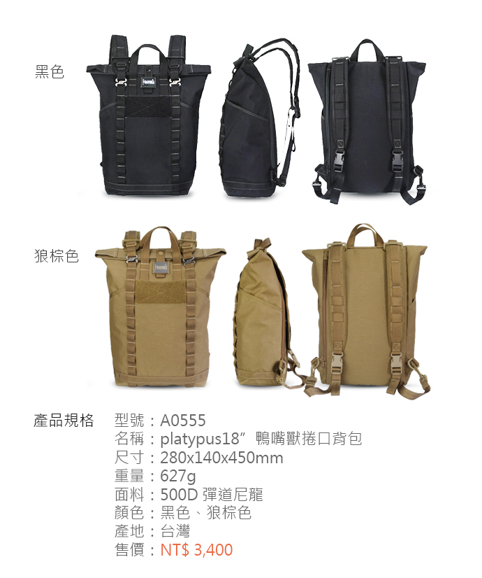 MAGFORCE 馬蓋先 18吋鴨嘴獸捲口背包