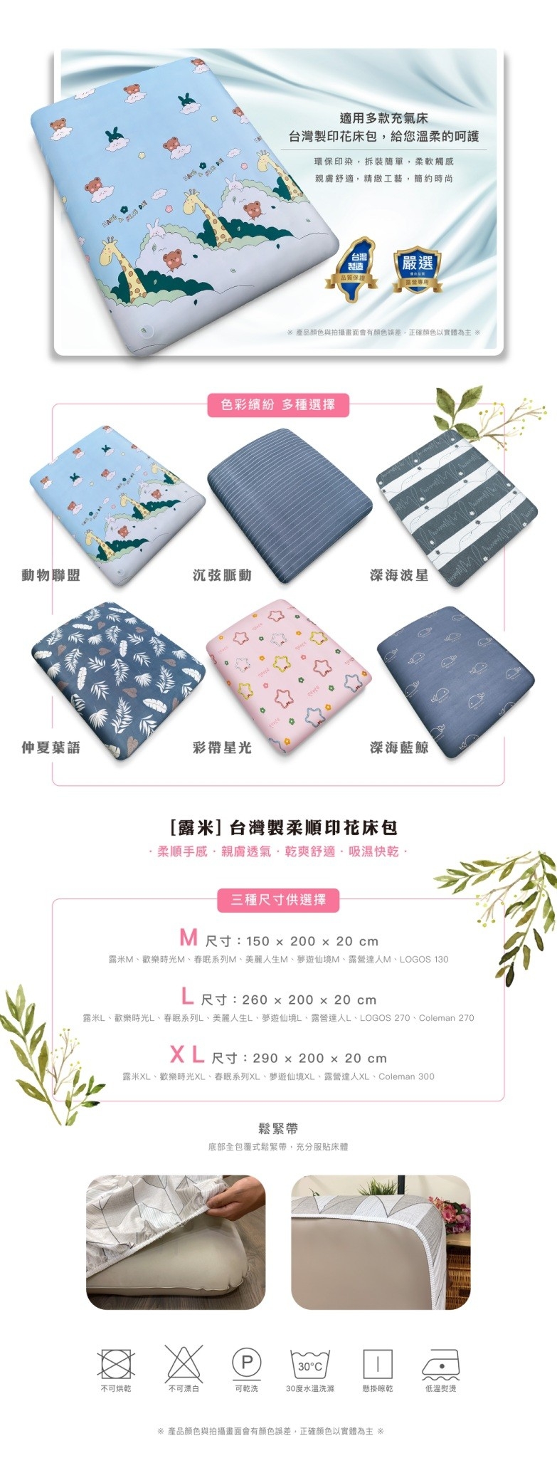 台灣製純棉床包,環保染印 柔軟觸感