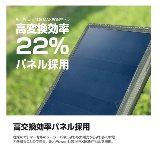 ★採用22%高轉換率的太陽能板內附電流檢測儀,可隨時掌握充電狀況