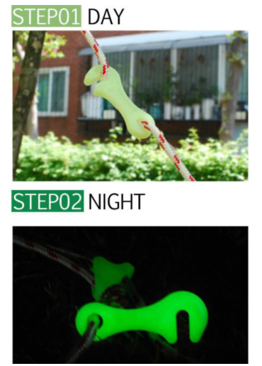 ●夜間也能擁有識別性的帳篷引導用夜光調節扣