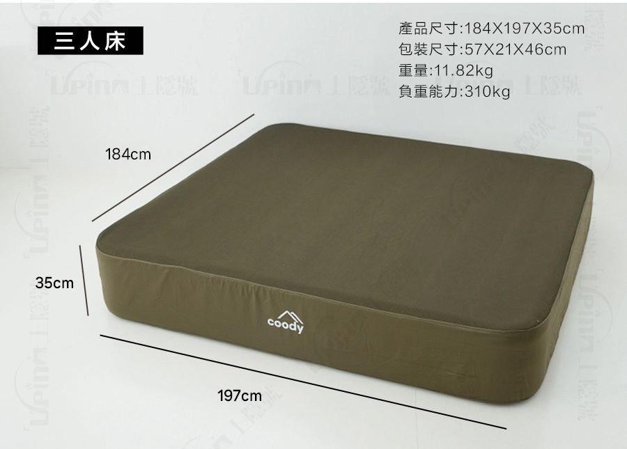 品名:COODY Air Mat 自動充氣抽氣床墊35cm 三人米色